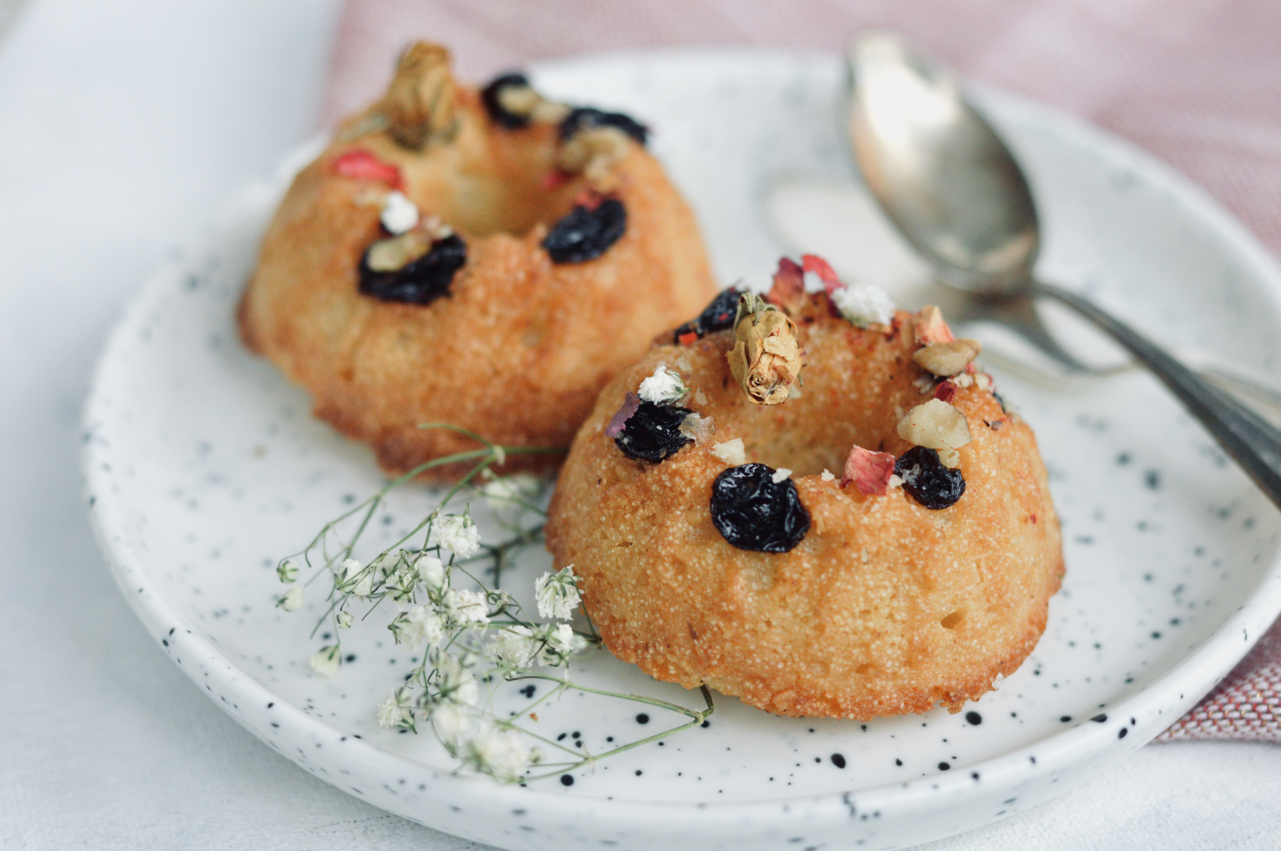 8. Bake for 15-20 minutes for mini cakes or 35-40 minutes for 9×11-inch baking tray. The cake should be golden brown on top, and an inserted toothpick should come out clean.
