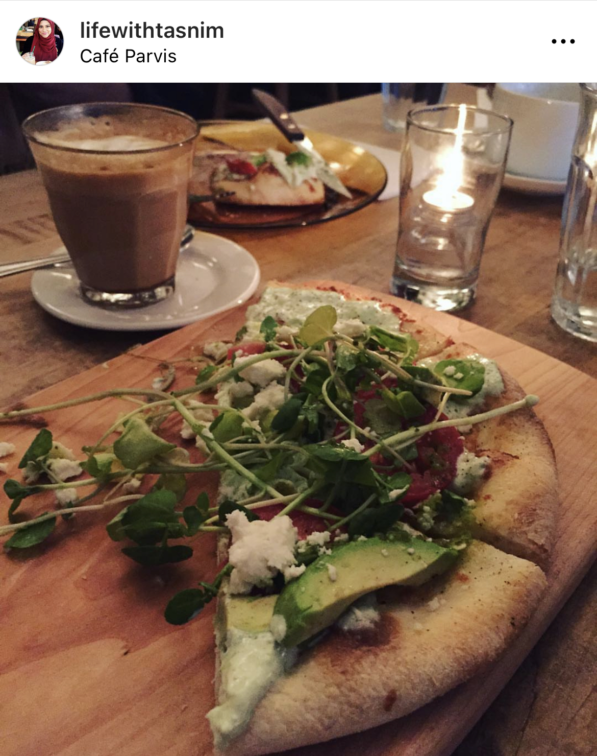 - Cafe Parvis has a great selection of drinks and food. Their pizza is delicious, I recommend trying Watercress (tomato, avocado, green onion sour cream, feta, jalapeño vinaigrette)!